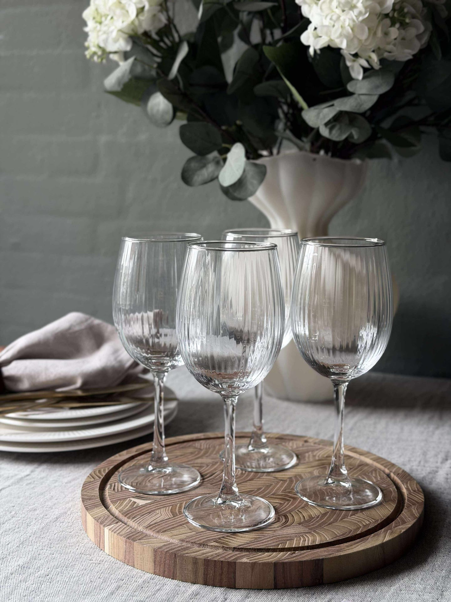Vinglas Rödvin Räfflad med guldkant - 4 st