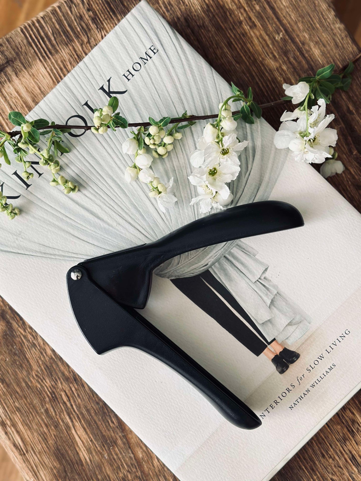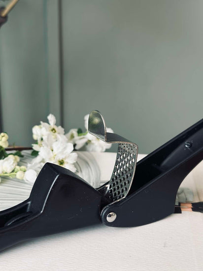 Trött på att kämpa med att hacka vitlök? Med Vitlökspress - Svart får du en smidig och enkel lösning. Denna robusta och hållbara press hanterar vitlöken snabbt, vilket sparar både tid och ansträngning i köket.