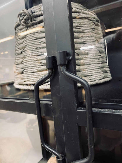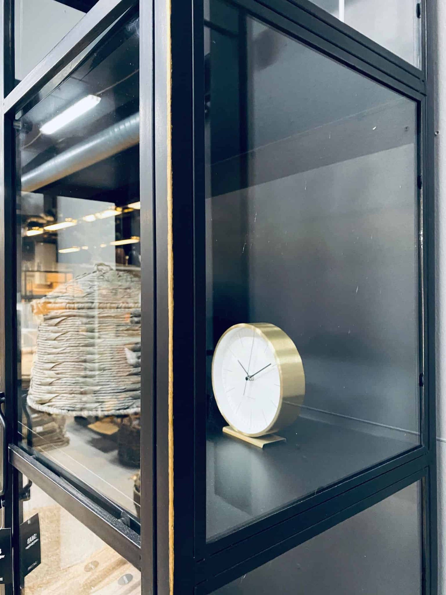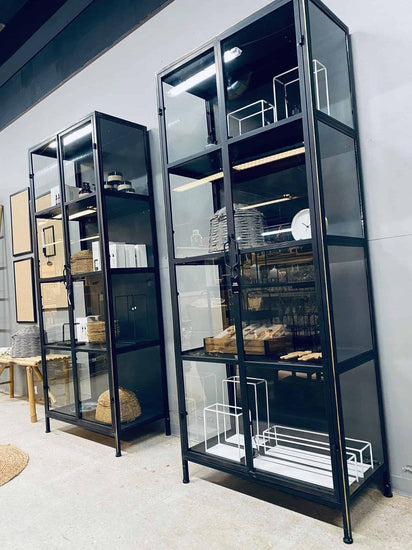 Vårt vitrinskåp är utrustat med hyllor i metall som erbjuder extra hållbarhet och stabilitet. Metallhyllorna ger en robust struktur som kan hantera tyngre objekt utan att böja eller skada skåpet. Dessutom bidrar de till skåpets övergripande estetik genom att skapa en modern och industriell känsla. Detta gör skåpet till ett praktiskt och stilsäkert tillägg till ditt vardagsrum.