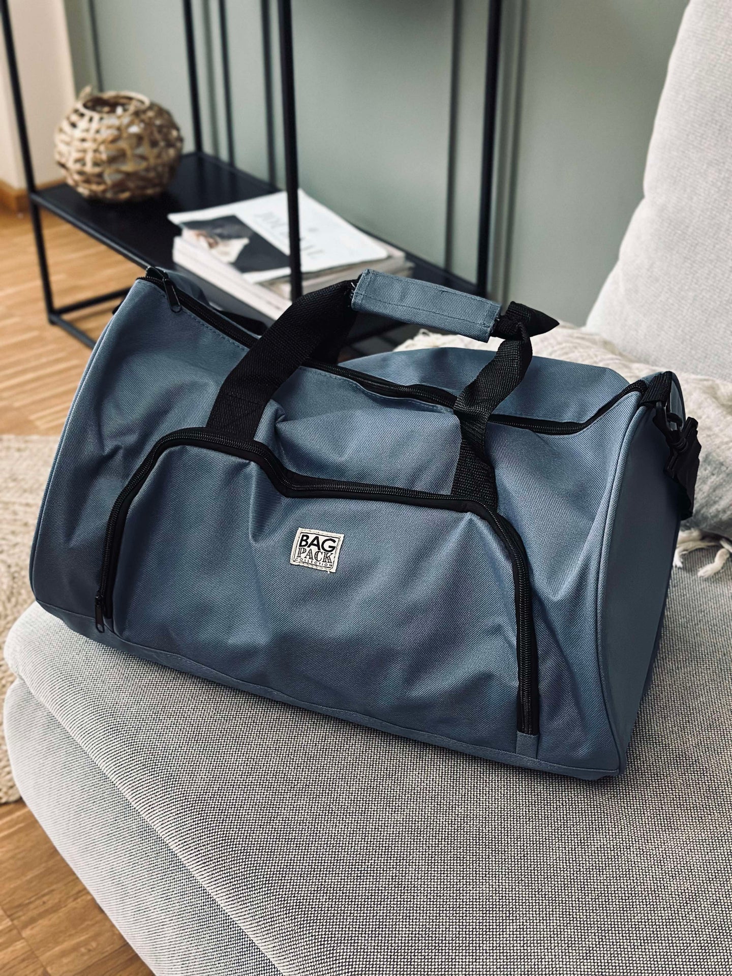 - Sportväskan är blå