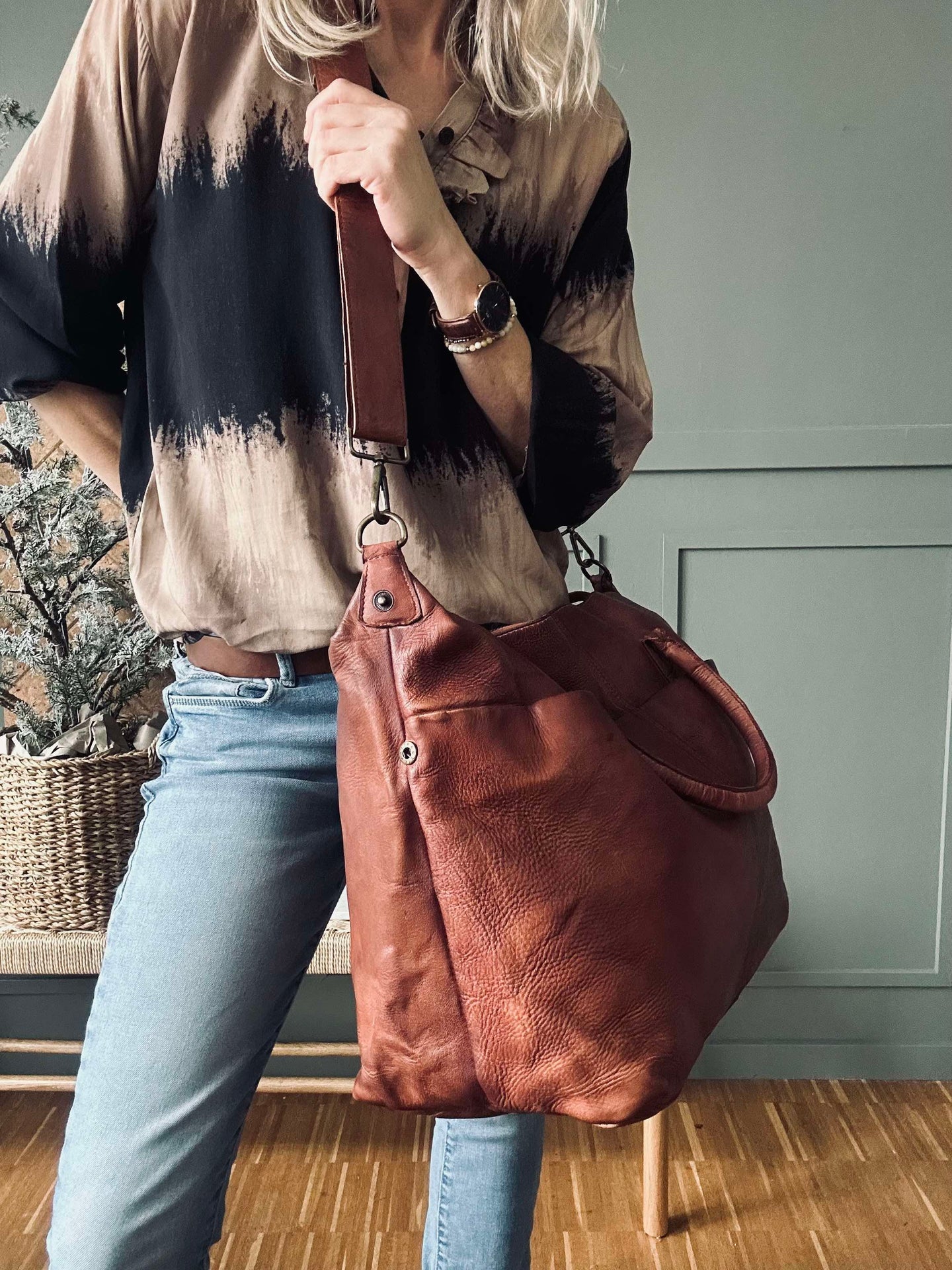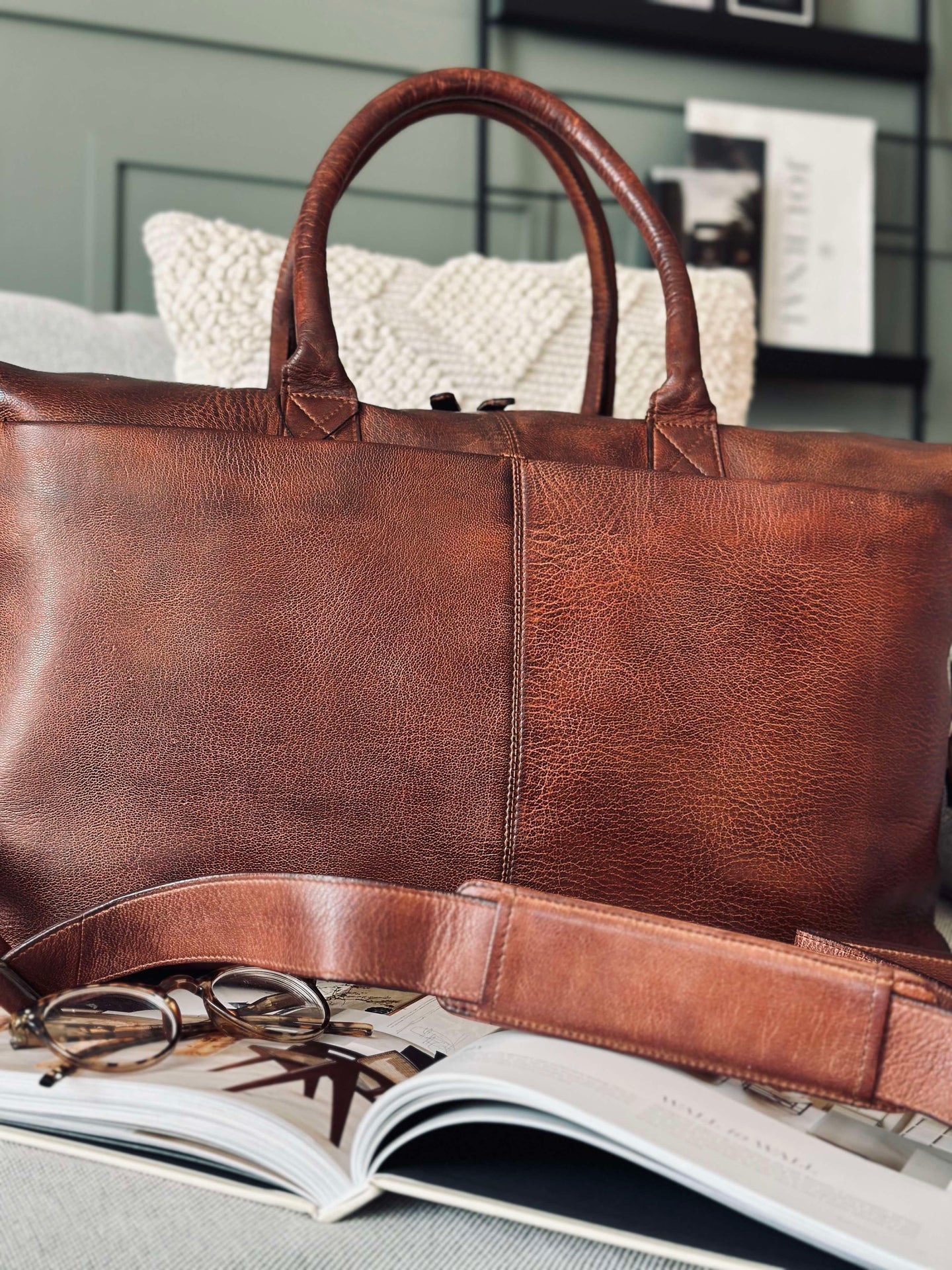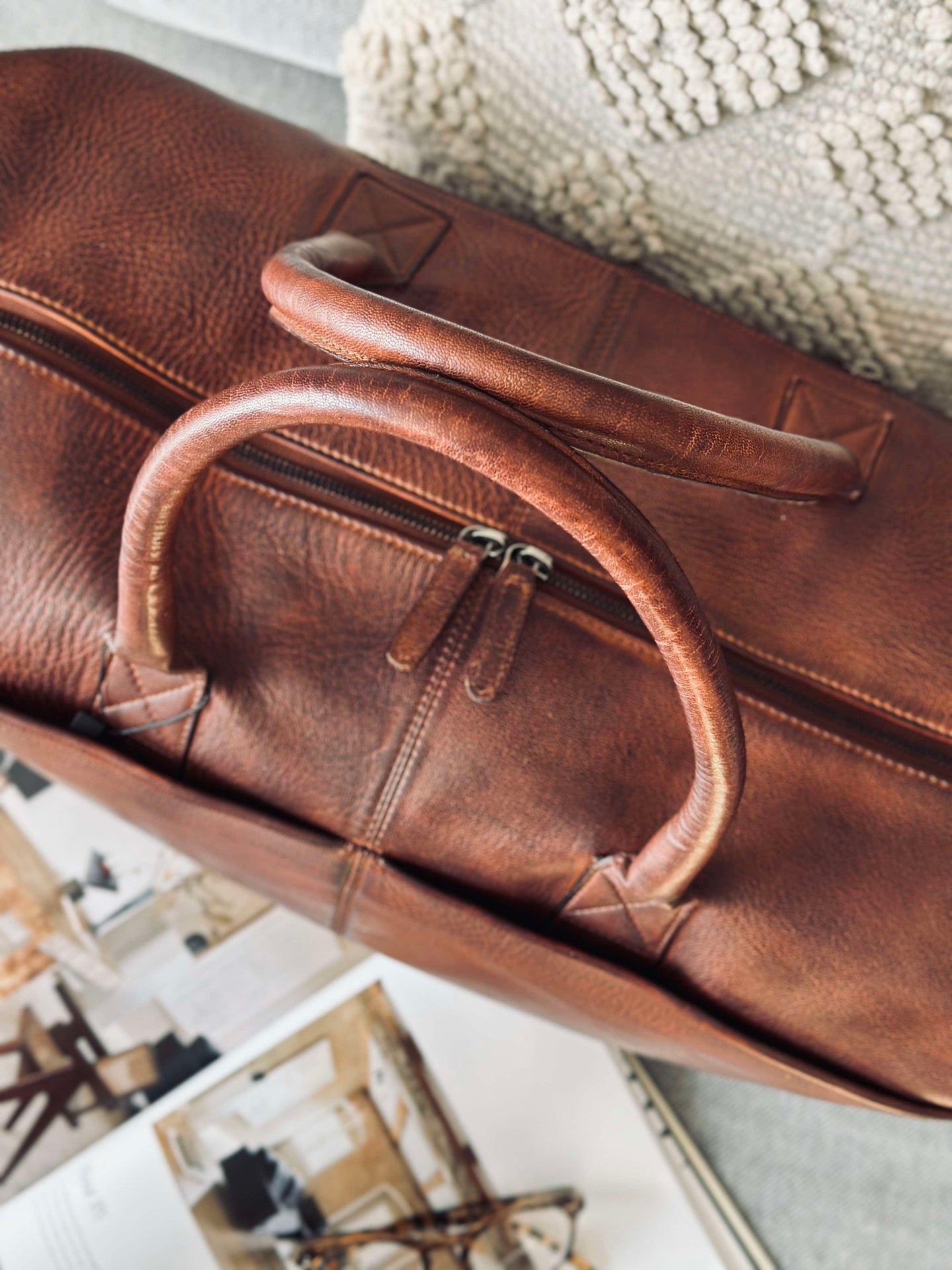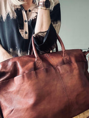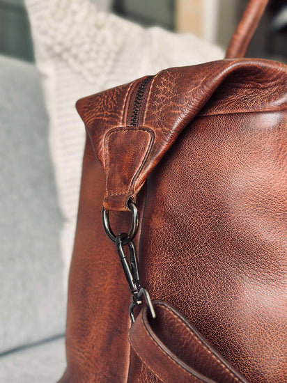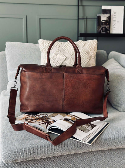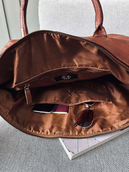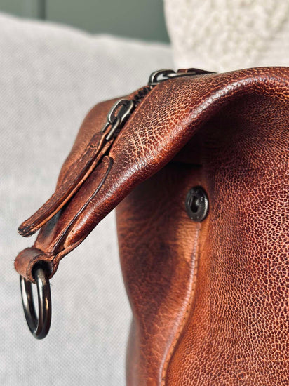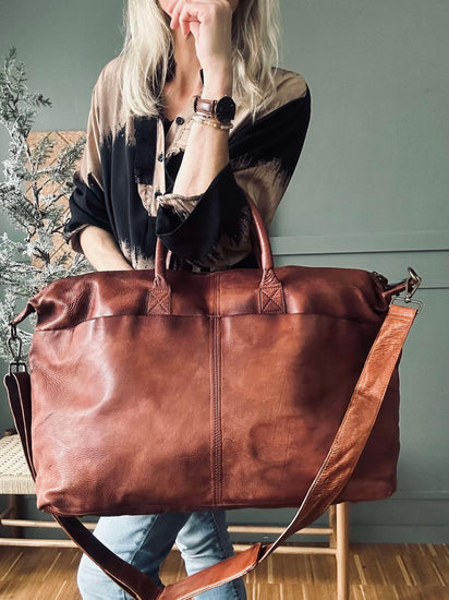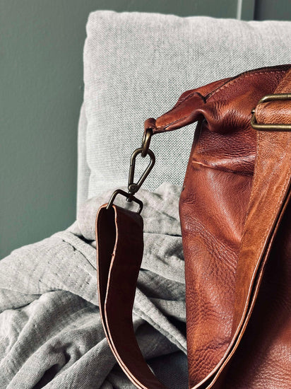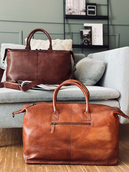 Weekendväskan är tillverkad av tvättad kohud, vilket ger den en naturligt mjuk och följsam känsla. Materialet är slitstarkt och åldras vackert över tid, vilket gör väskan till en långsiktig investering. Den tvättade kohuden bidrar också till en distinkt textur och färgvariation, vilket ger varje väska sin egen karaktär. Det är ett material som kombinerar stil med funktionalitet.