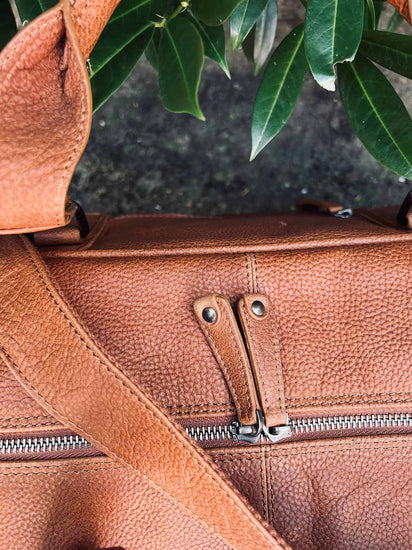Behöver du en pålitlig följeslagare på dina helgäventyr? Weekendväskan i kraftigt läder Cognac är ett utmärkt val med sitt slitstarka material och tidlösa design. Den är skapad för att förbättras med åren, alltid redo för ditt nästa äventyr.